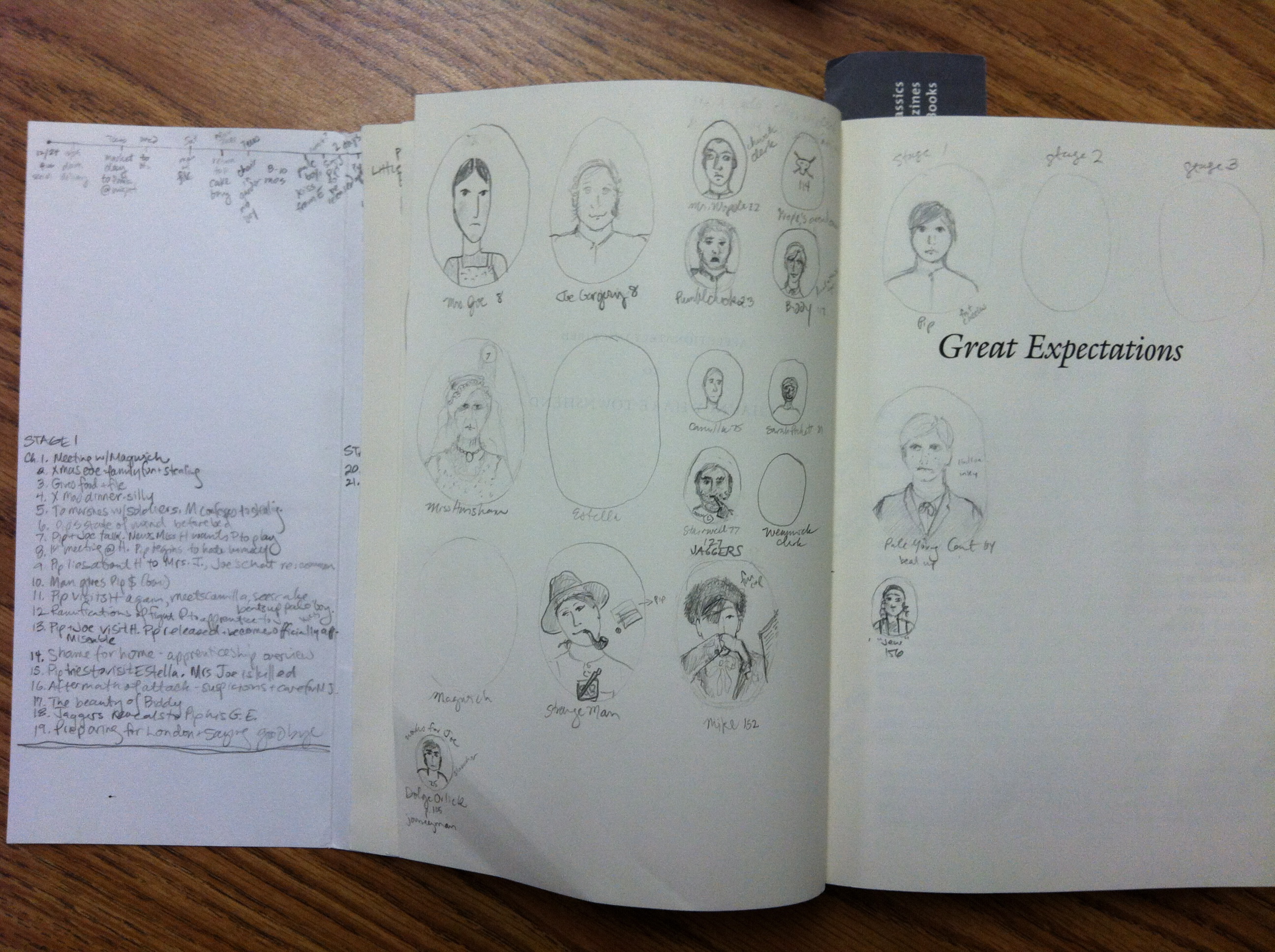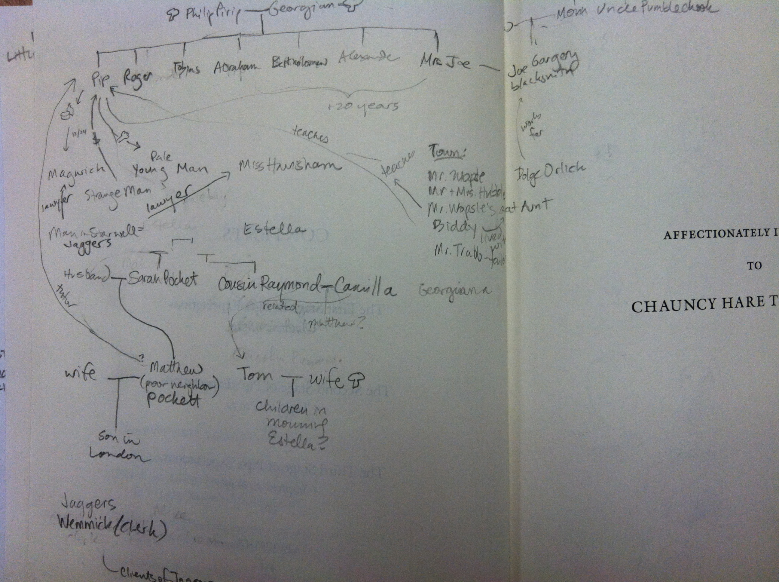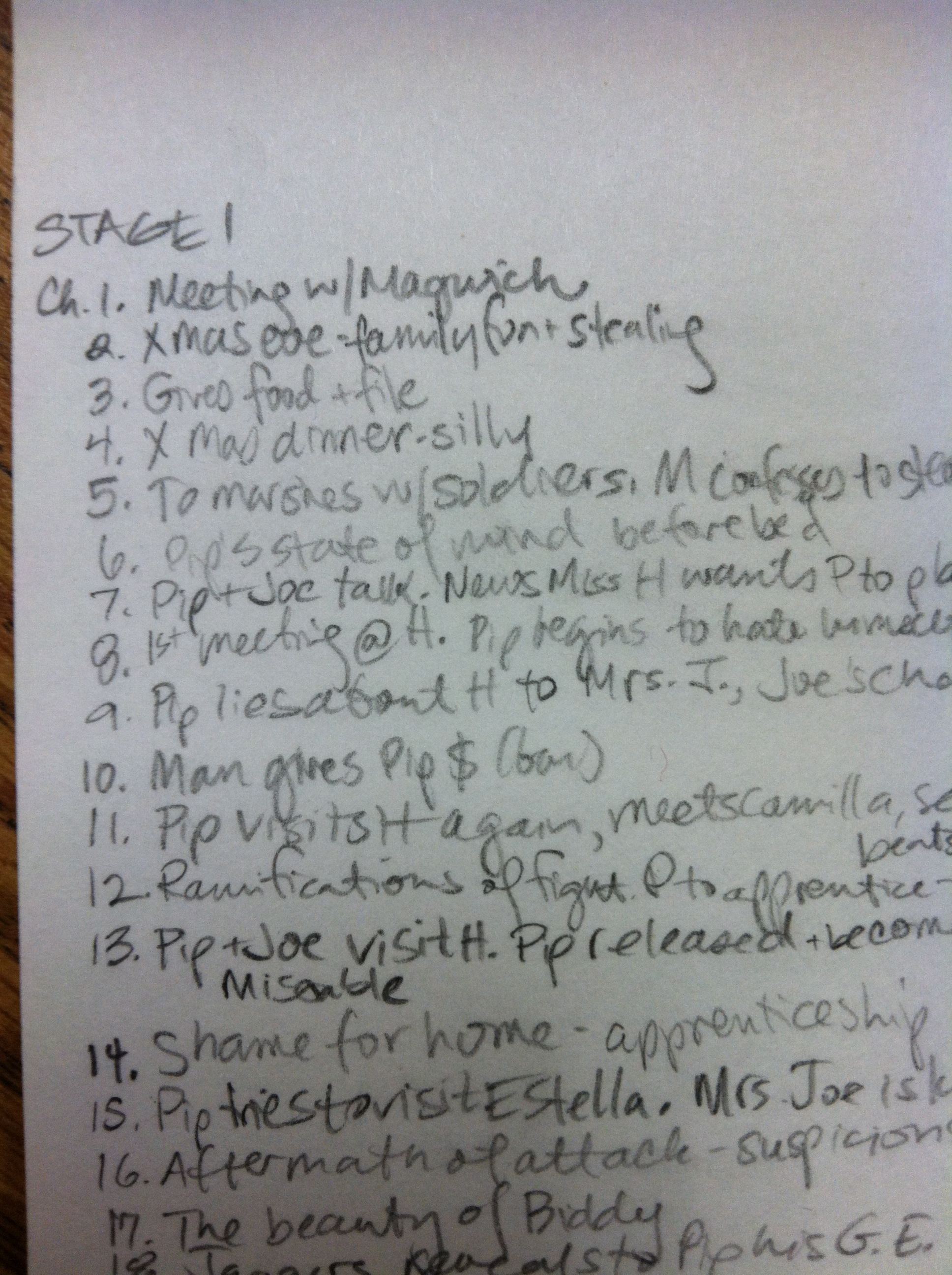 My outline for Great Expectations, which I’m reading for the first time as an adult now.