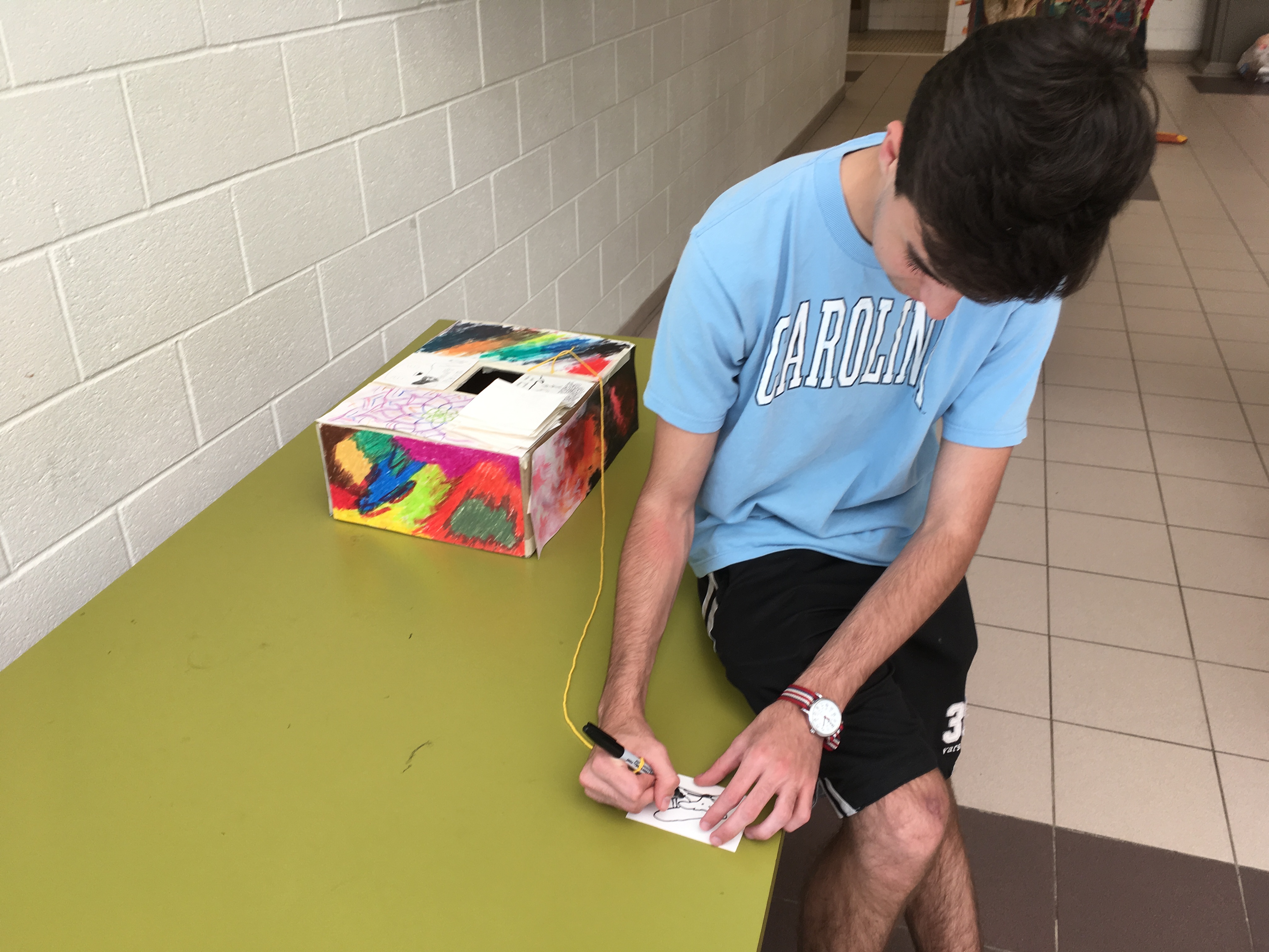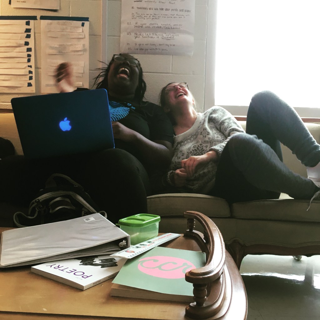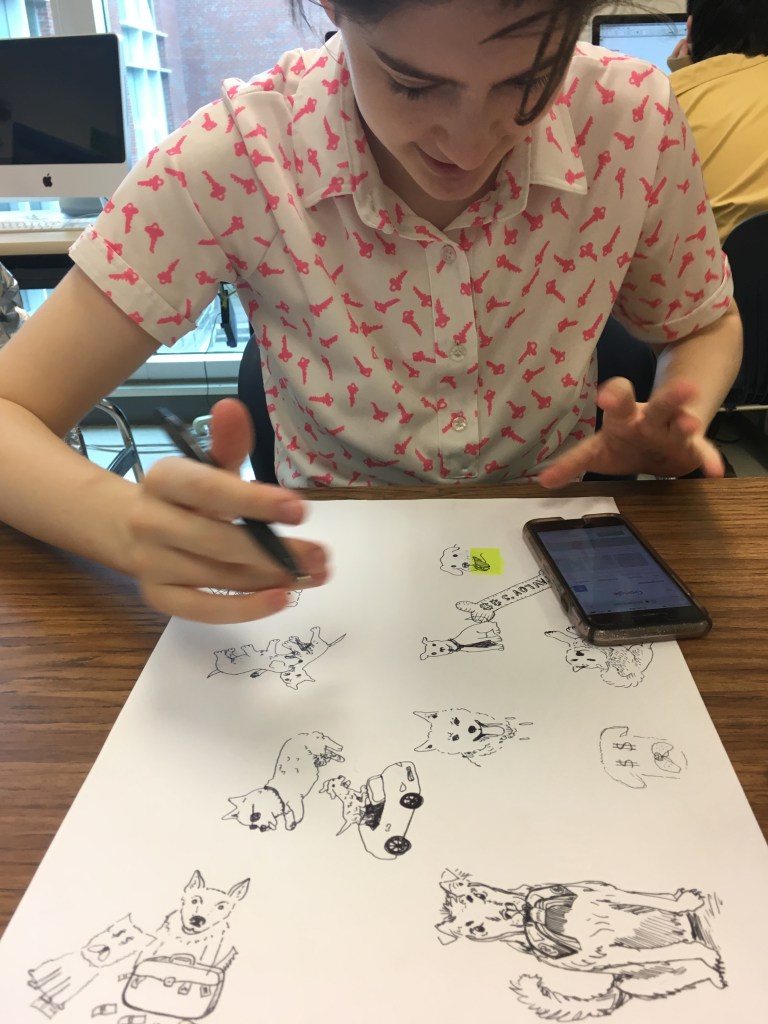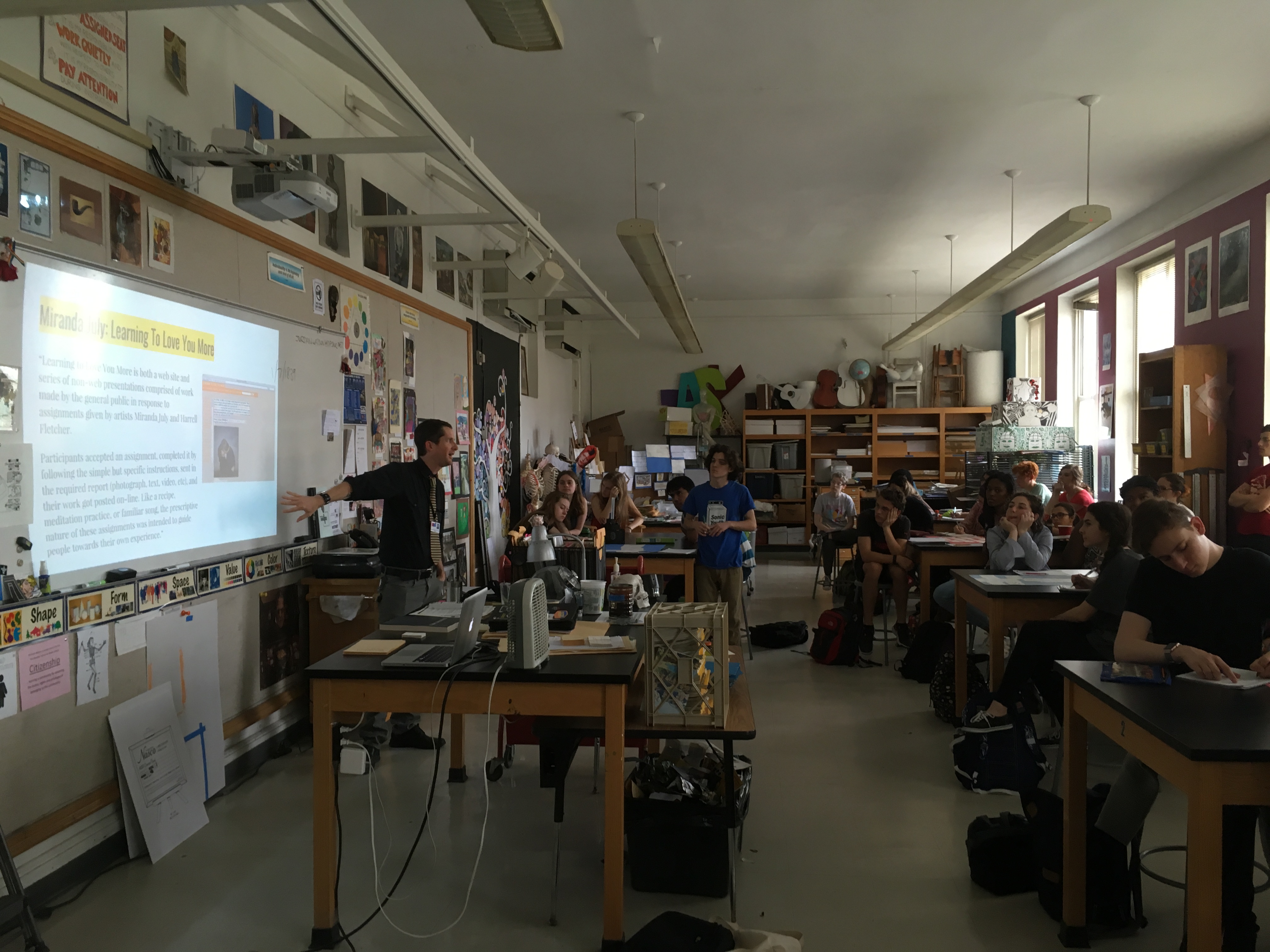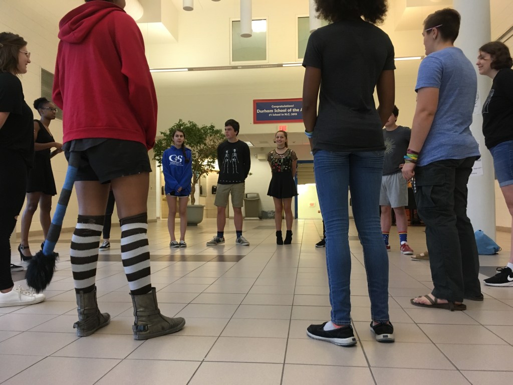 Creative writing and intermediate 2D students collaborated in a multi-week exploration of how artists and writers integrate process into their thinking. The collaboration kicked off with a TASK party, then students formed groups based on thematic interests. Over the course of the next few weeks, small groups developed their own processes that culminated in a gallery show.