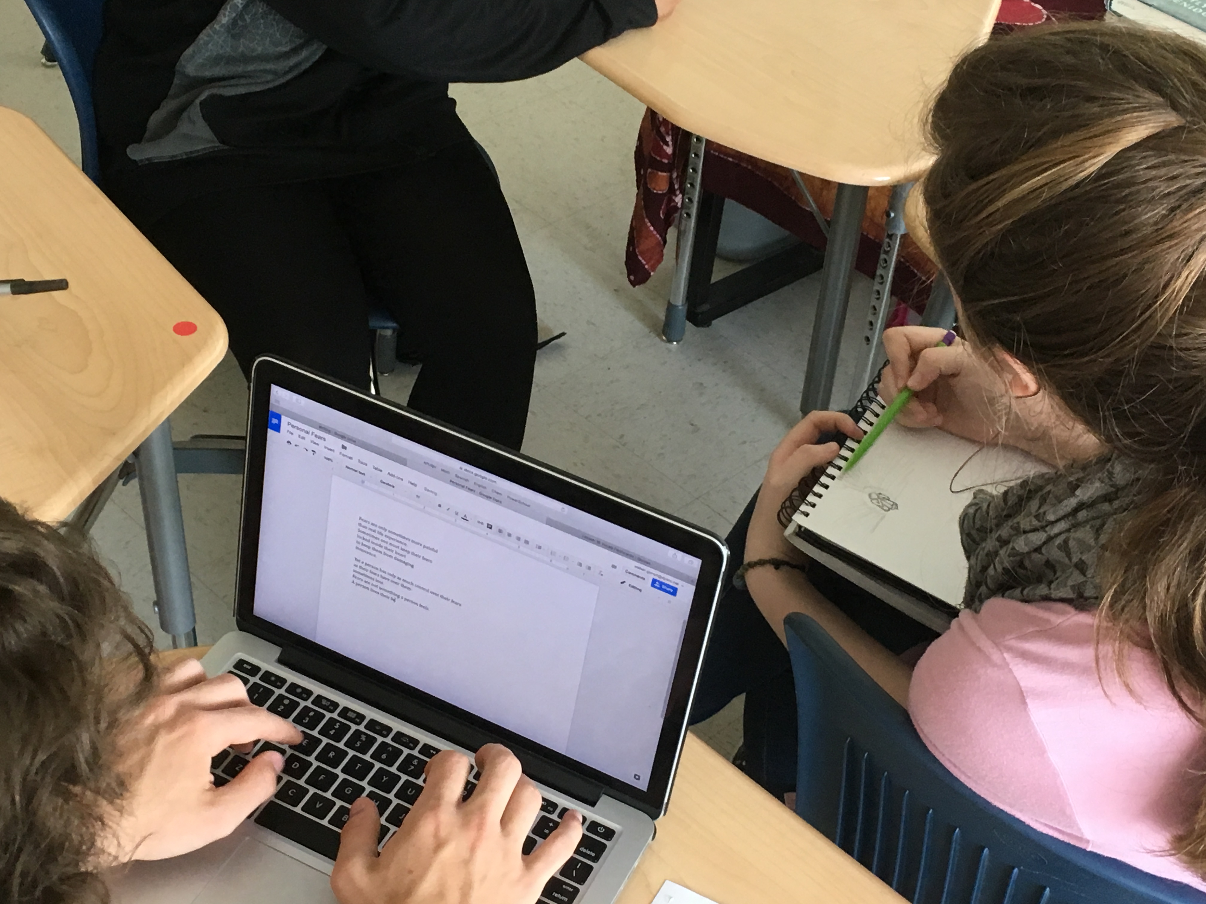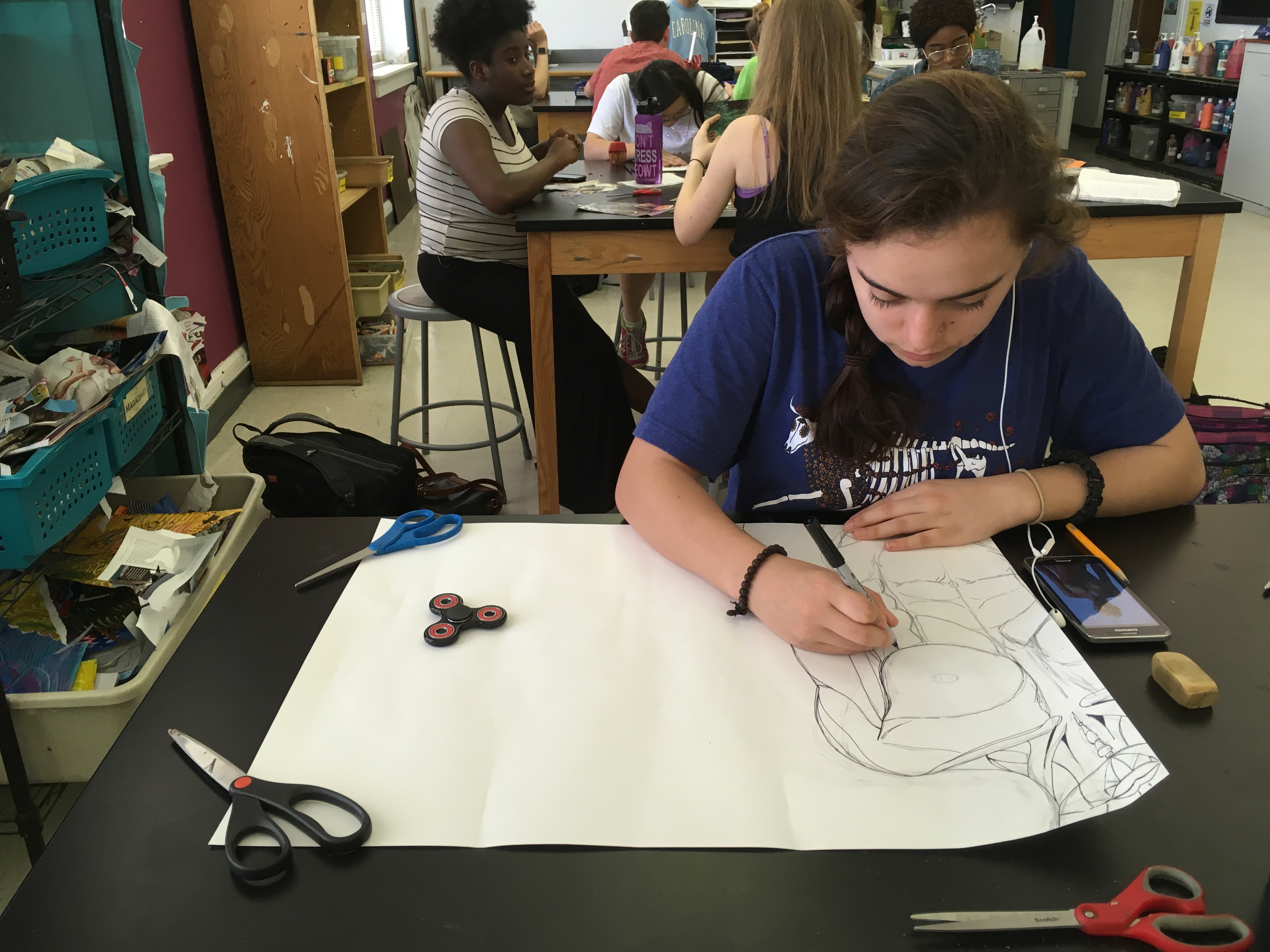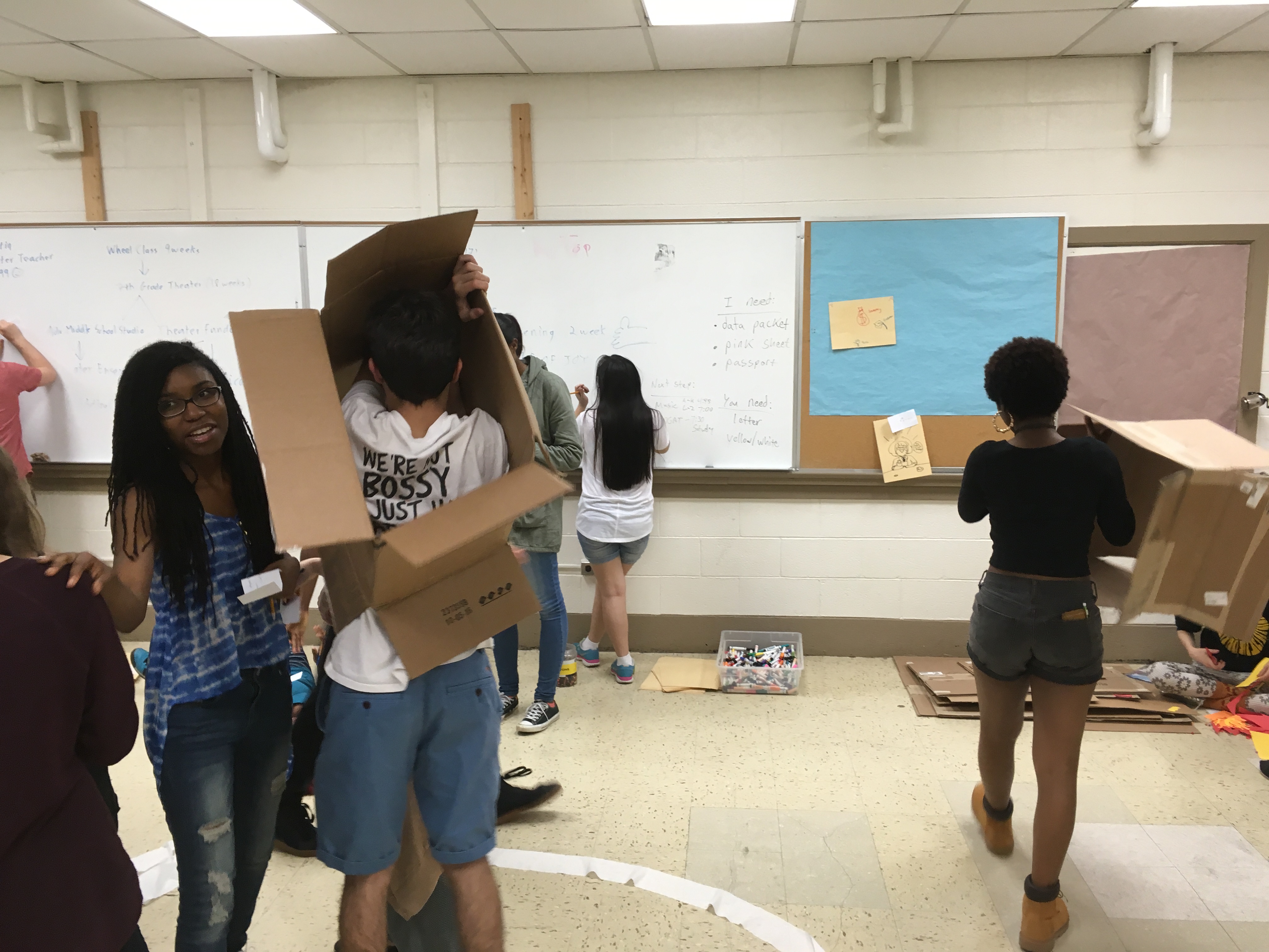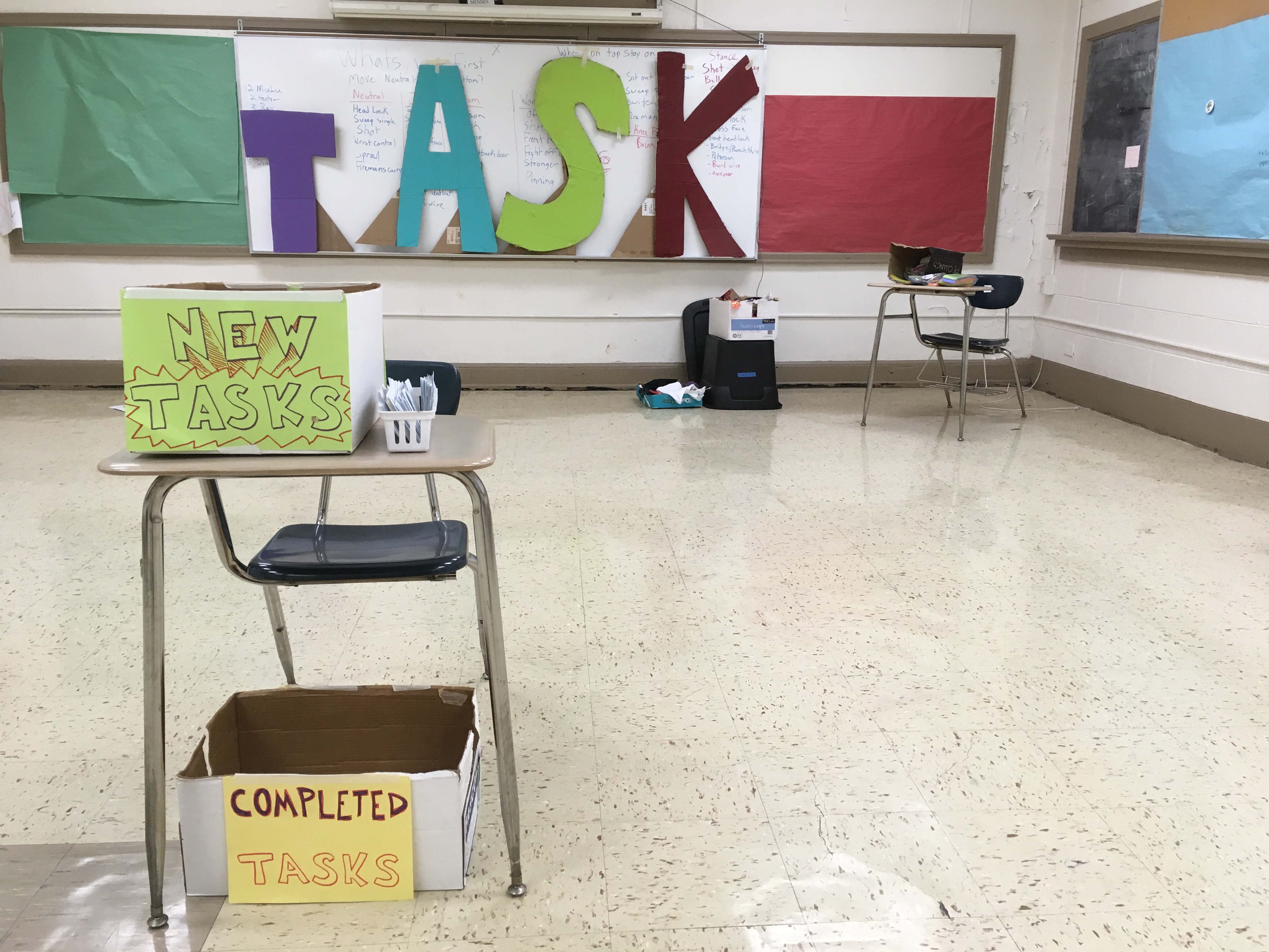 Creative writing and intermediate 2D students collaborated in a multi-week exploration of how artists and writers integrate process into their thinking. The collaboration kicked off with a TASK party, then students formed groups based on thematic interests. Over the course of the next few weeks, small groups developed their own processes that culminated in a gallery show.
